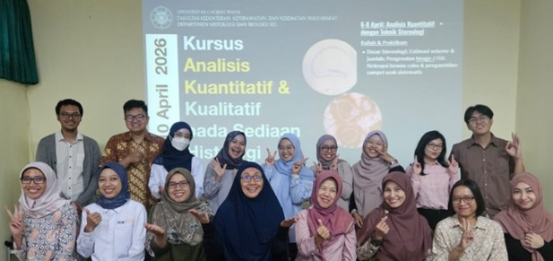 Departemen Histologi dan Biologi Sel kembali menyelenggarakan Pelatihan Teknik Stereologi tahun 2026 yang kali ini menjadi bagian dari rangkaian kursus Analisis Kualitatif dan Kuantitatif pada sediaan histologi. Inovasi utama pada tahun ini terletak pada praktikum pengambilan sampel acak sistematik (systematic uniform random sampling) dan metode smooth fractionator yang diterapkan langsung pada organ hepar dan lien tikus. Berbeda dari tahun sebelumnya yang masih menggunakan media sederhana seperti kertas, praktikum kini dilakukan dengan sampel organ hewan coba, memberikan pengalaman yang lebih aplikatif dan mendekati kondisi penelitian sesungguhnya.